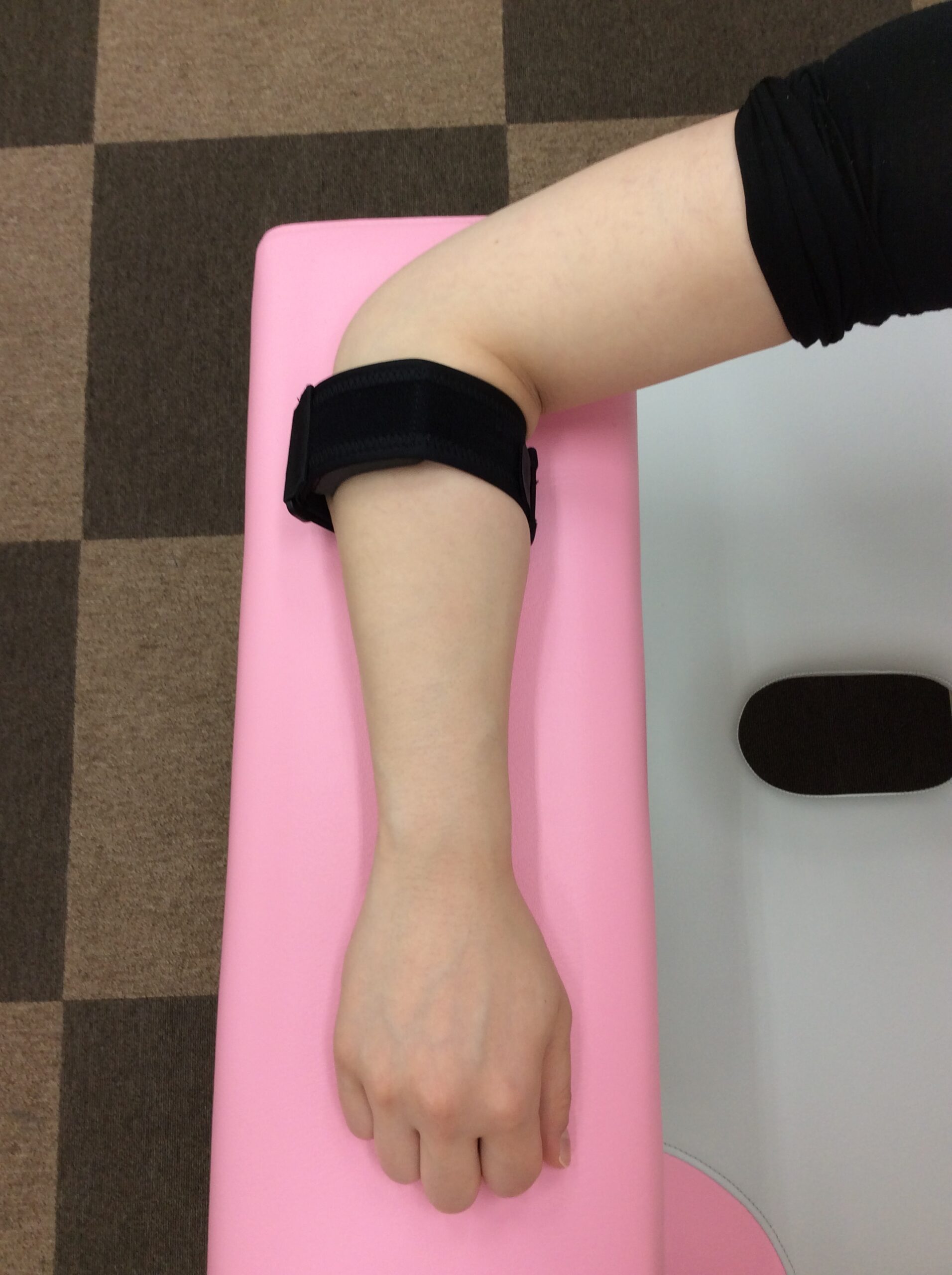 当院ではエルボーバンドというサポーターの使用を推奨し、筋へのアプローチとして