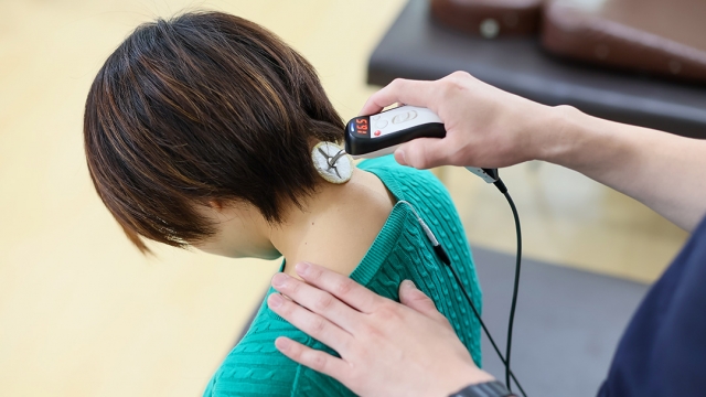 患部に高電圧の電気刺激を与えることで、痛みや炎症を効果的に軽減します。治療は通常、数分から10分程度で完了します。